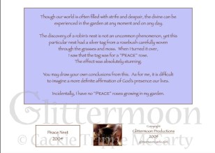 Back of Peace Nest Card Published April 7, 2018 at 629 × 449 in Garden Cards ← Previous Next → Peace Nest, front Like Loading...