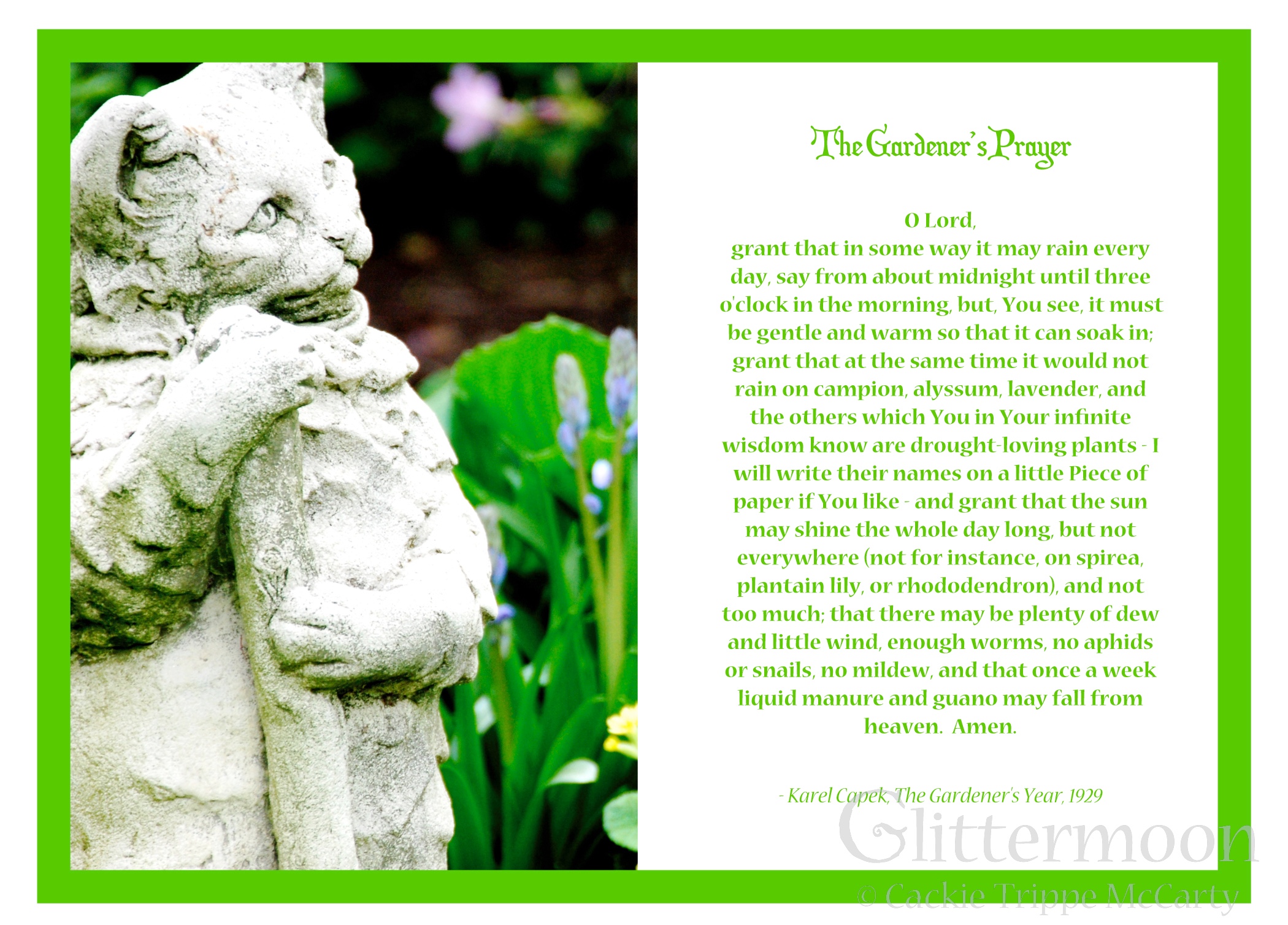 The Gardener’s Prayer 2017 Published April 7, 2018 at 2100 × 1508 in Garden Cards ← Previous Next → The Gardener’s Prayer – front Like Loading...
